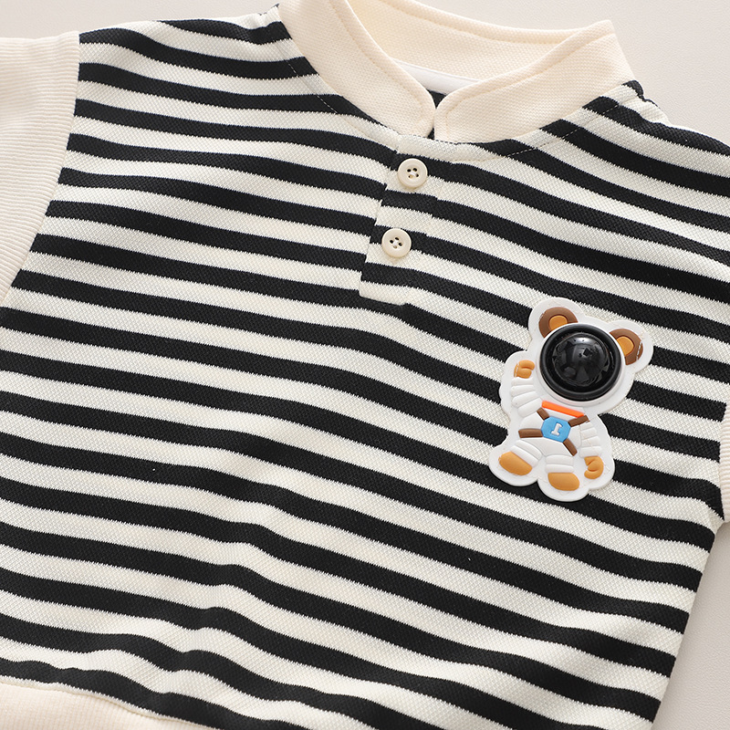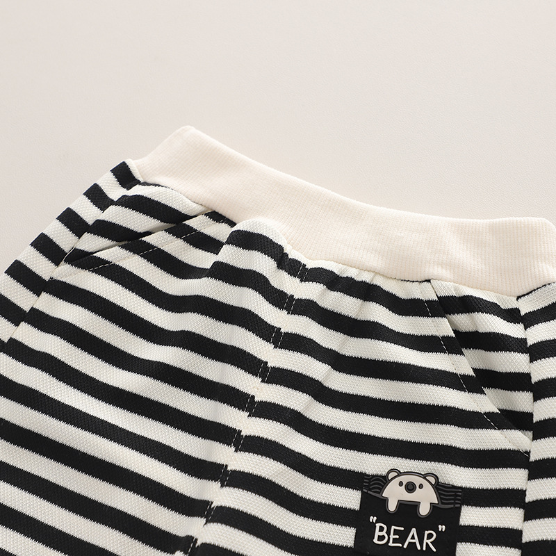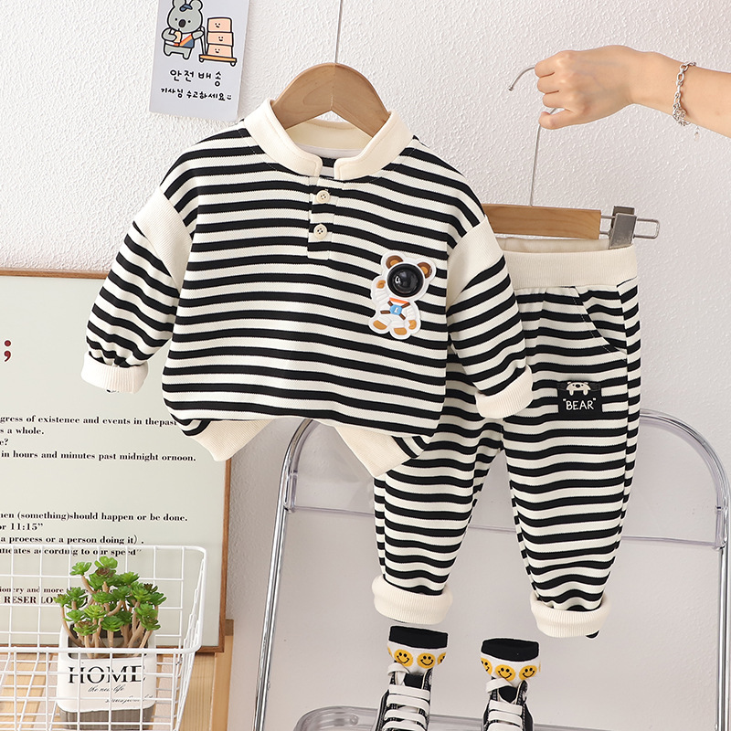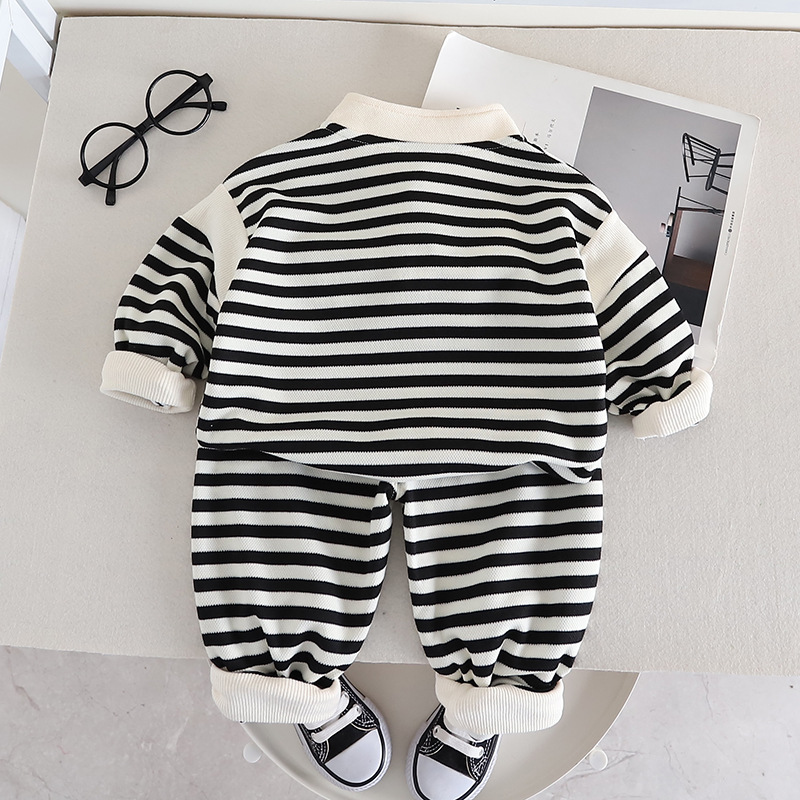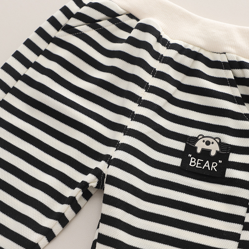 Boys' Spring and Autumn Set New Korean Edition Handsome Men's Treasure Striped Sweatshirt Two Piece Set for Children's Fashion