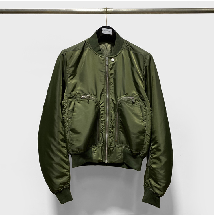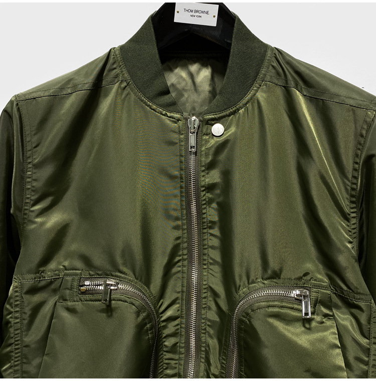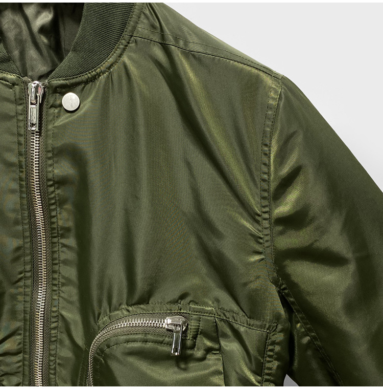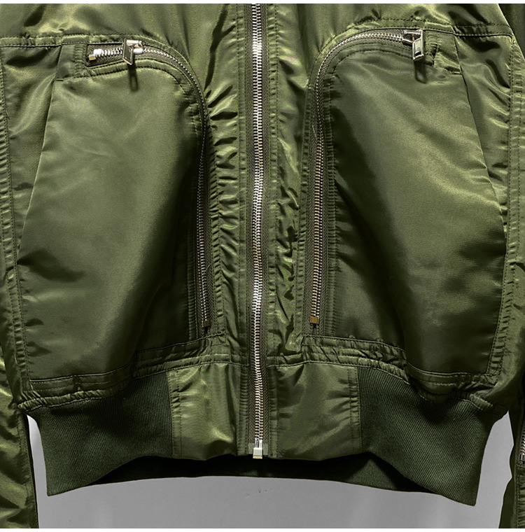 Green zippered large pocket men's flying jacket baseball jacket cotton jacket