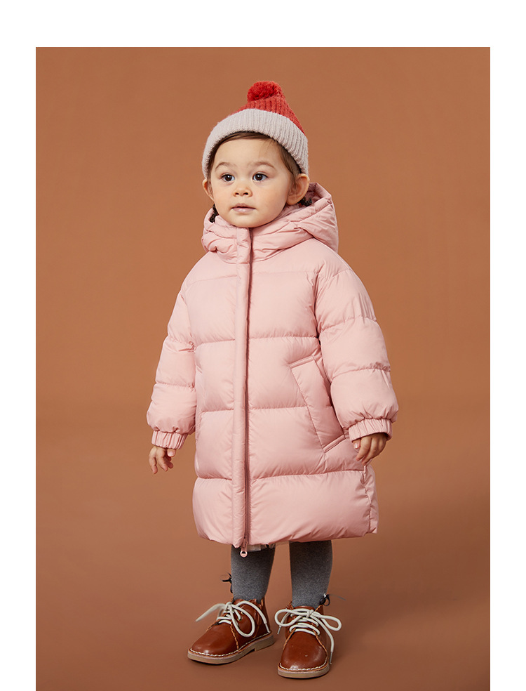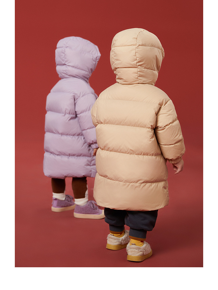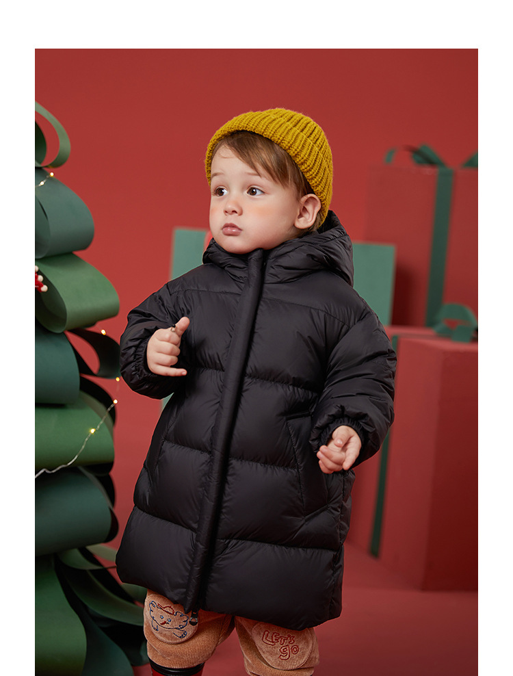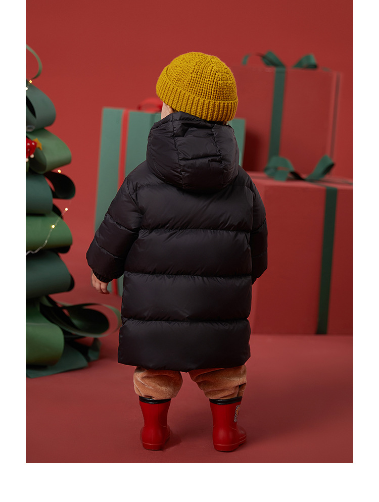 Winter New Three proof Fabric White Goose Down Warm Hooded Long Down Coat for Boys and Girls