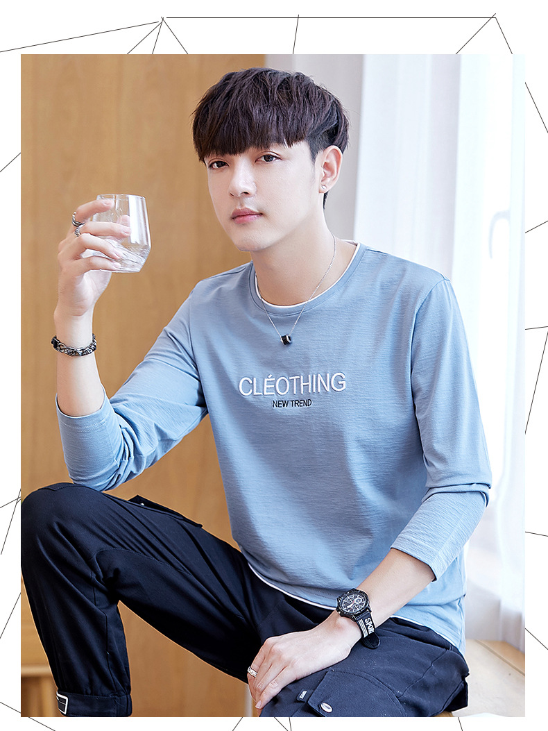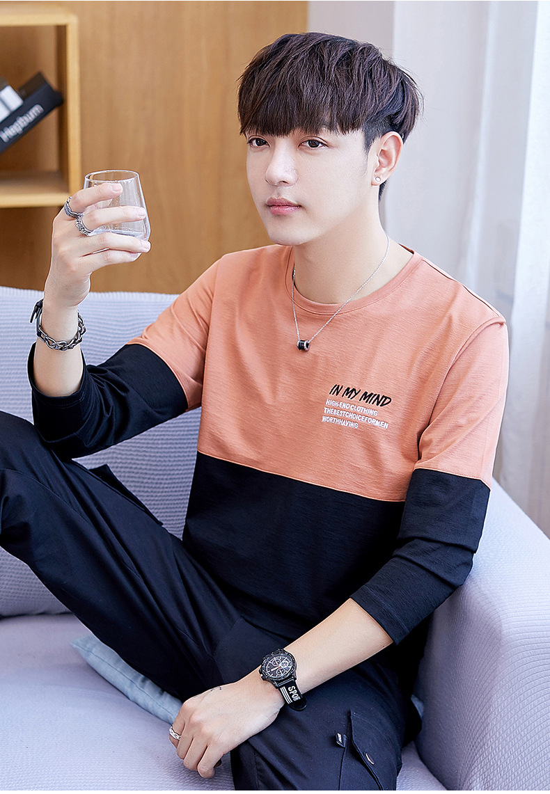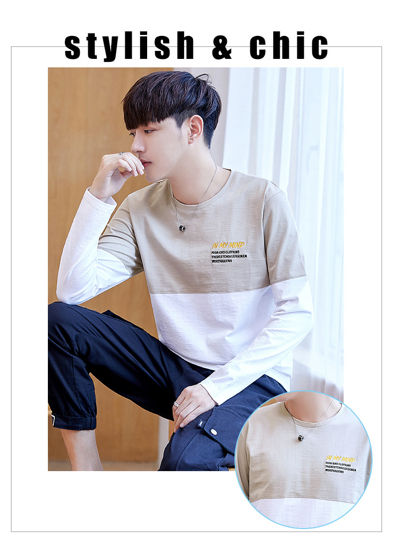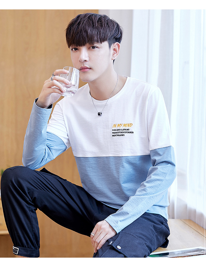 long sleeve t-shirt men's crew neck simple versatile autumn cotton casual color matching long sleeve t-shirt men's youth fashion