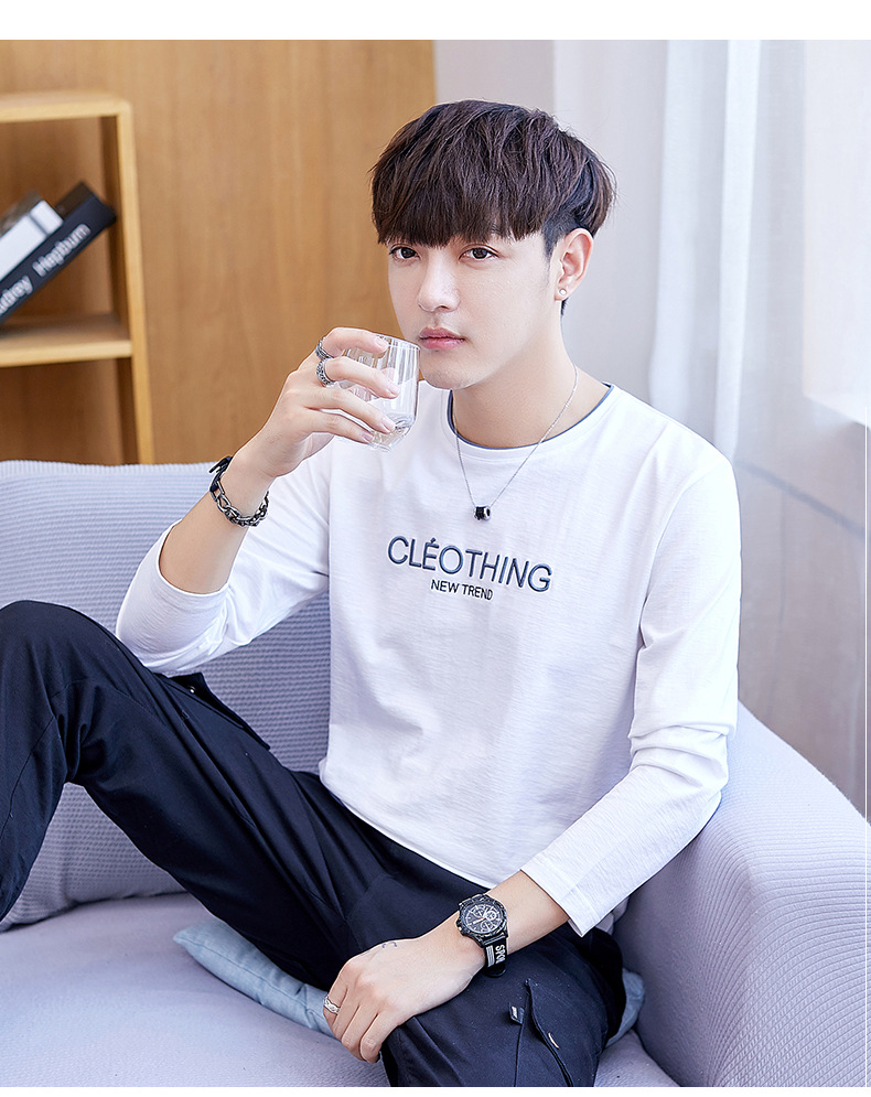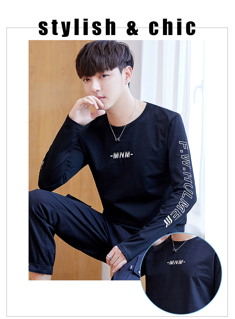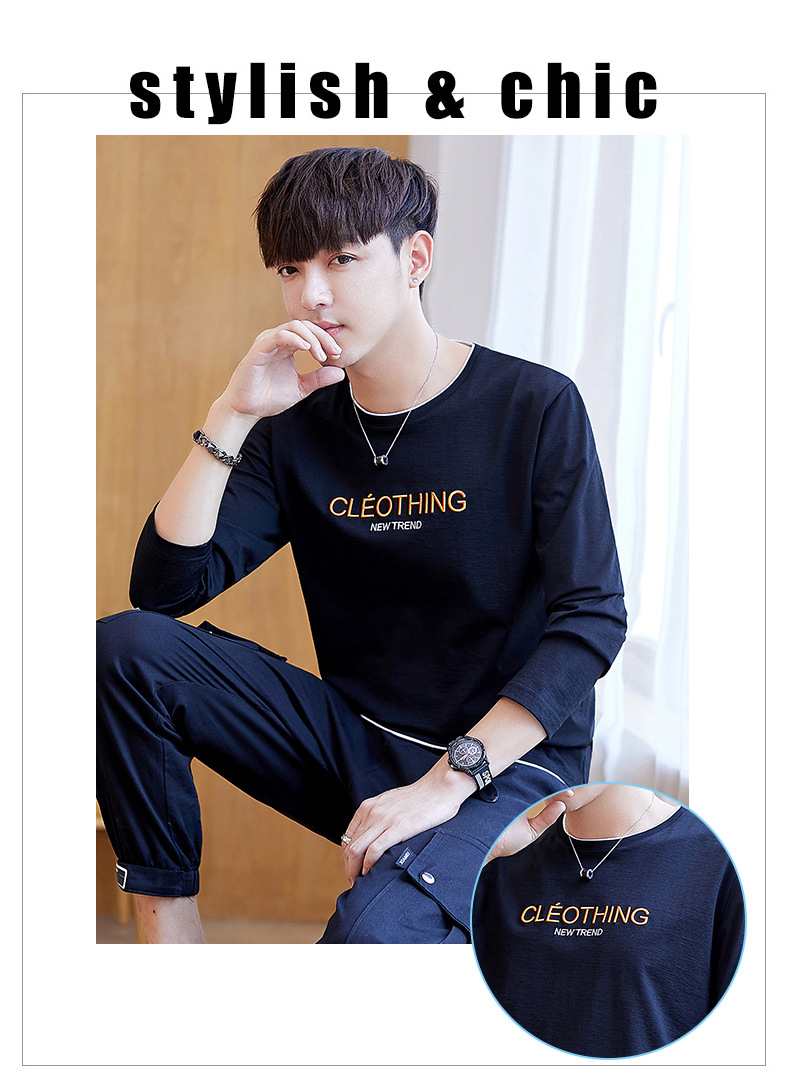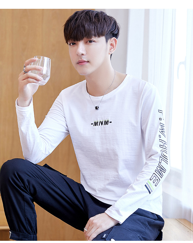 long sleeve t-shirt men's crew neck simple versatile autumn cotton casual color matching long sleeve t-shirt men's youth fashion