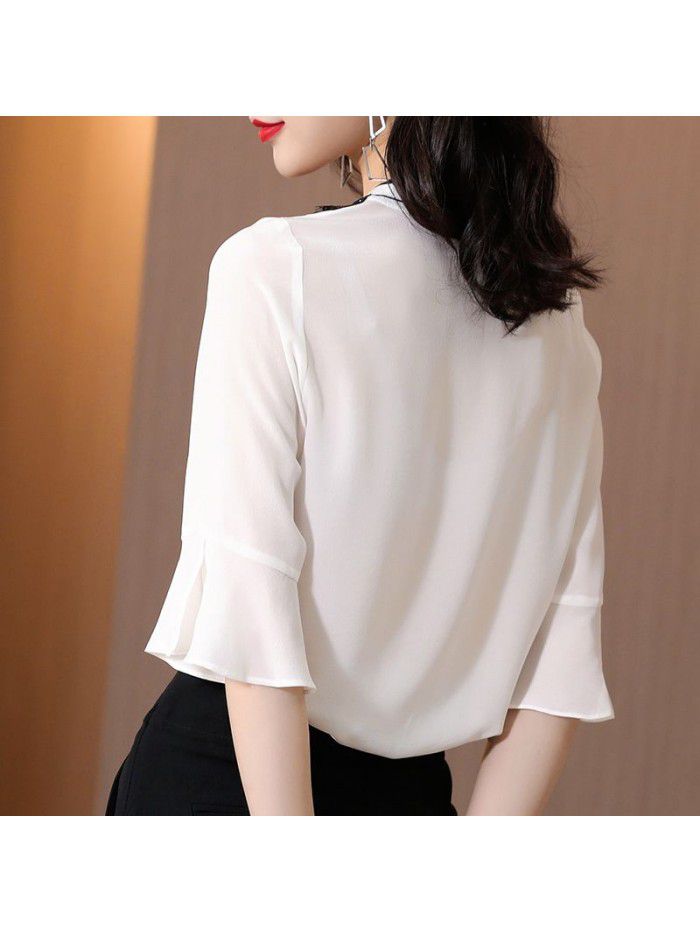 Real silk shirt women summer new lace design small foreign style short sleeve silk shirt women