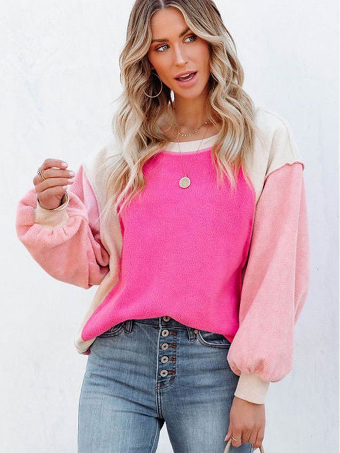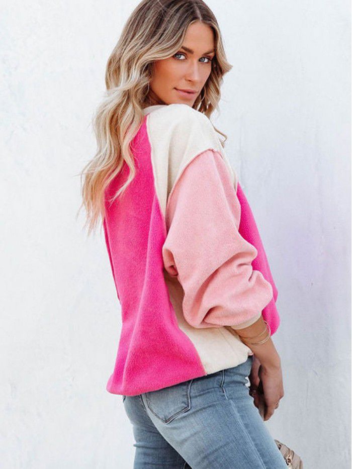 Winter Fashion New Suede Sweater Contrast Long Sleeve Round Neck Pullover