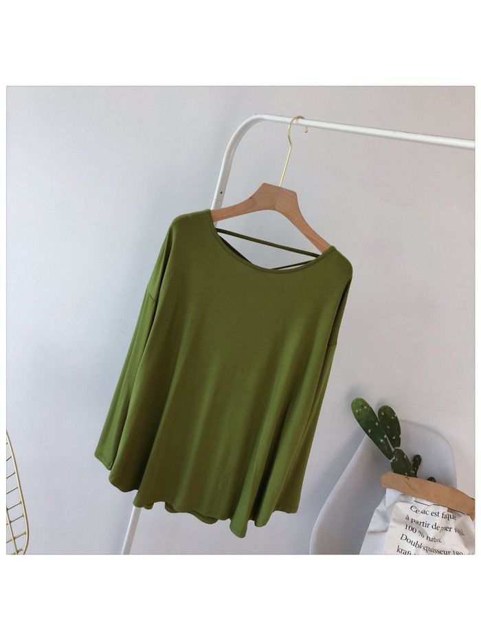 Sexy backless long sleeved T-shirt for women, loose fitting large size Korean autumn outfit, solid color drape, lazy dance dress