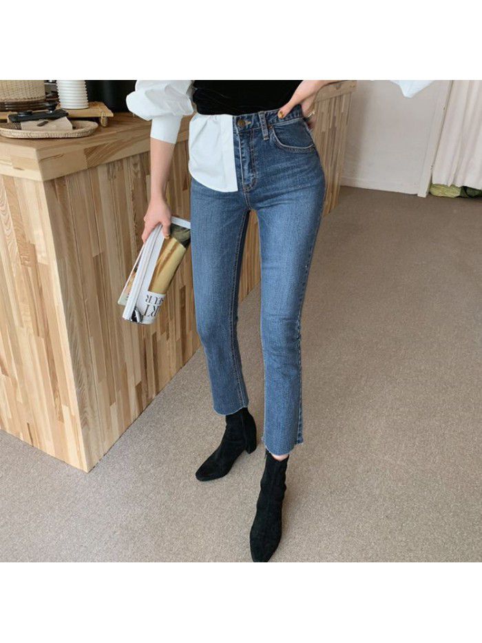 Straight jeans women's Black High Waist Stretch summer new slim slim quarter slim pipe pants