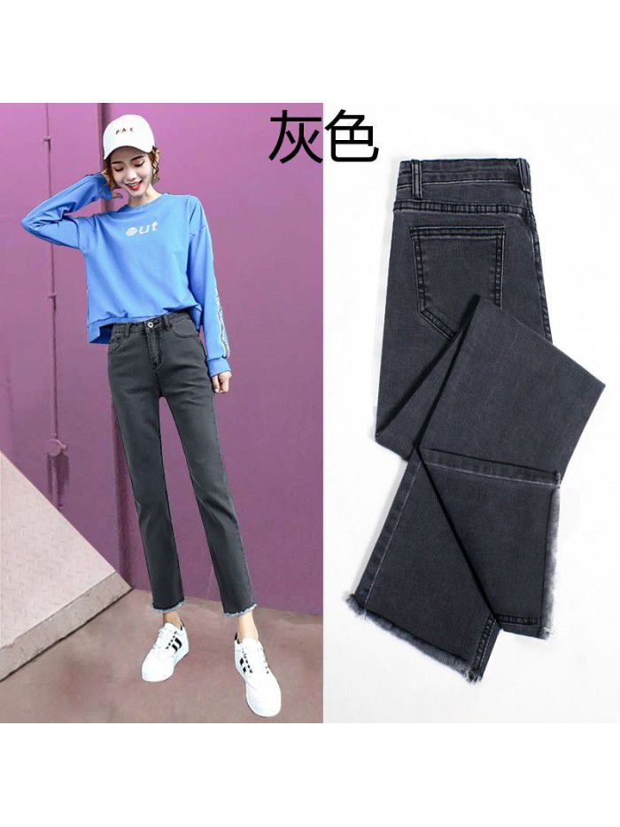 Straight jeans women's cropped black pants spring new cropped high waist loose pants with wide legs