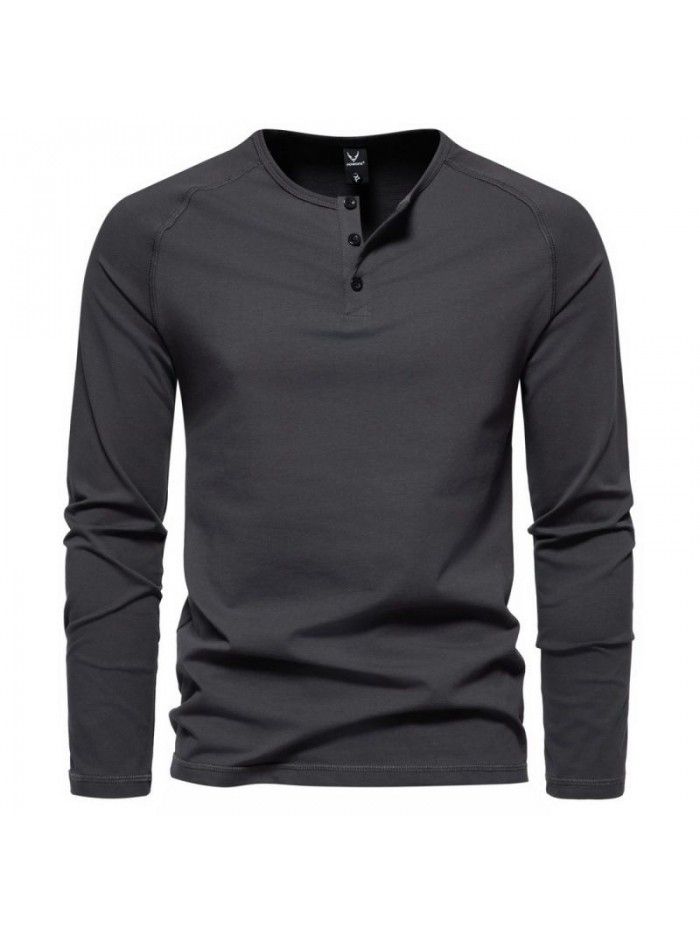 Autumn New Men's Henry Neck Long Sleeve T-shirt Large Casual Solid Underlay Shirt for Men