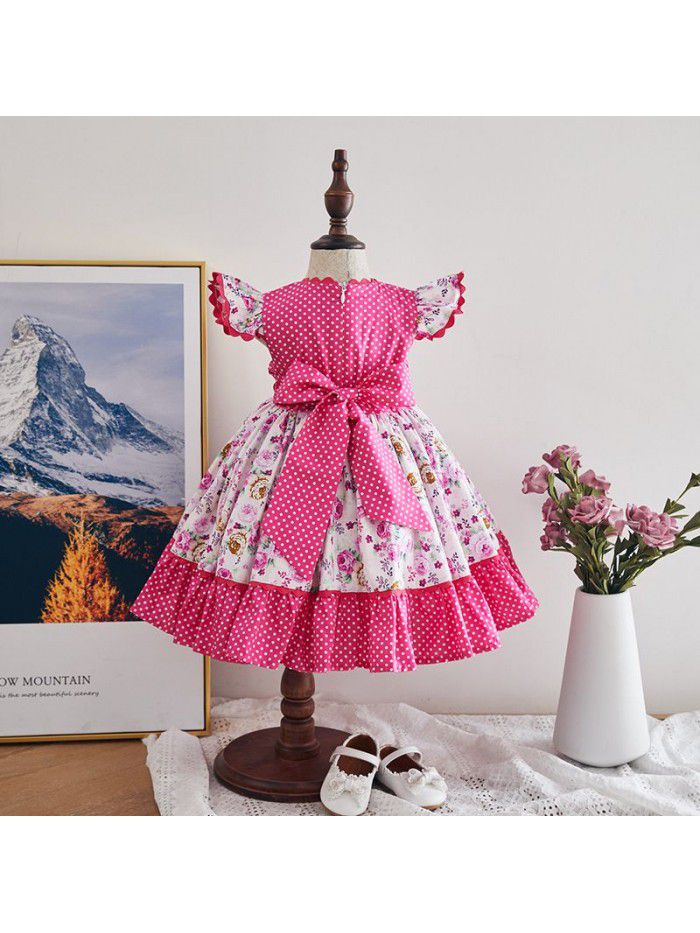 new girl flower skirt printed big bow children's dress flying sleeve Princess Dress