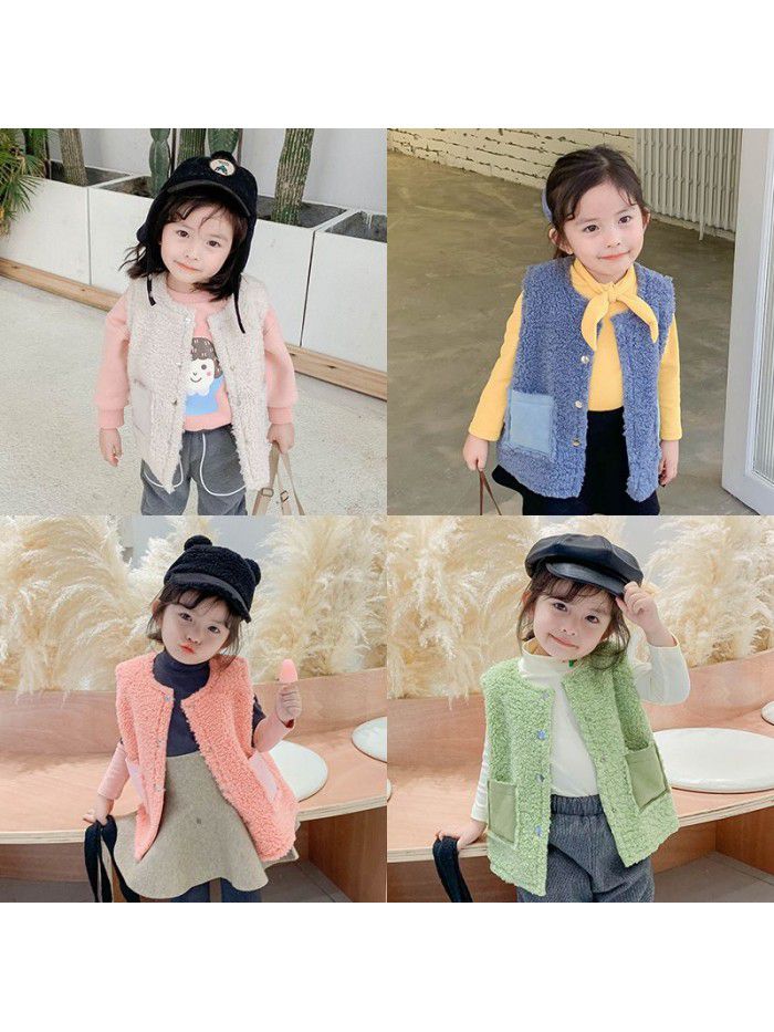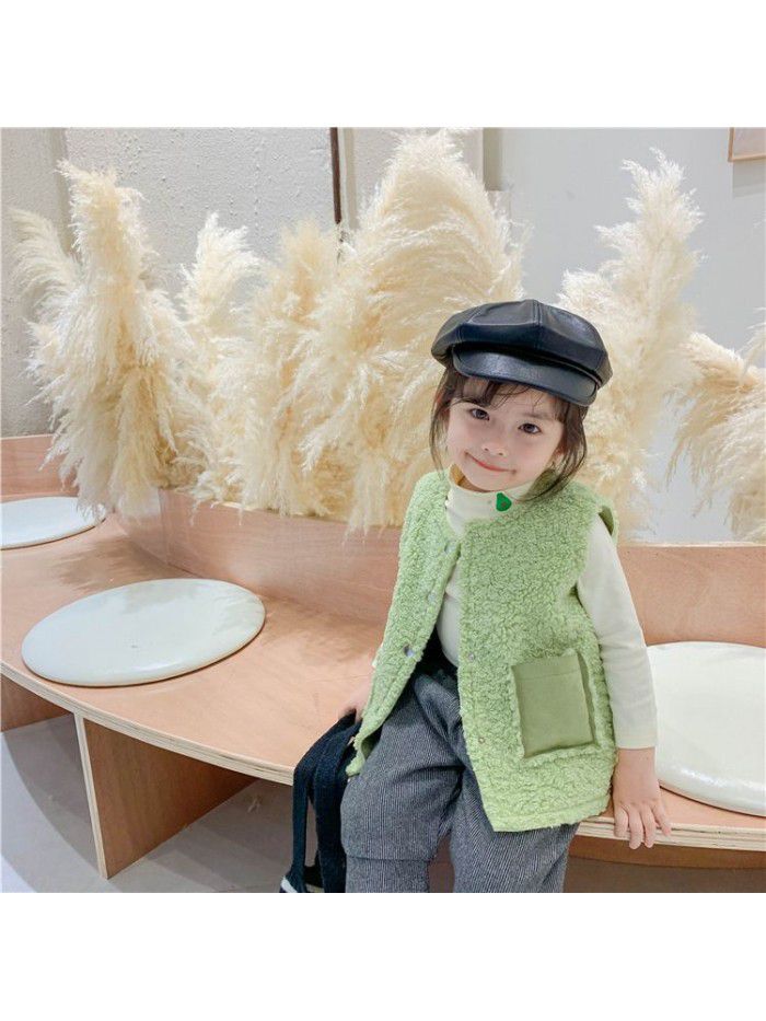 Girls' waistcoat imitation cashmere vest spring and autumn winter children's Korean children's jacket