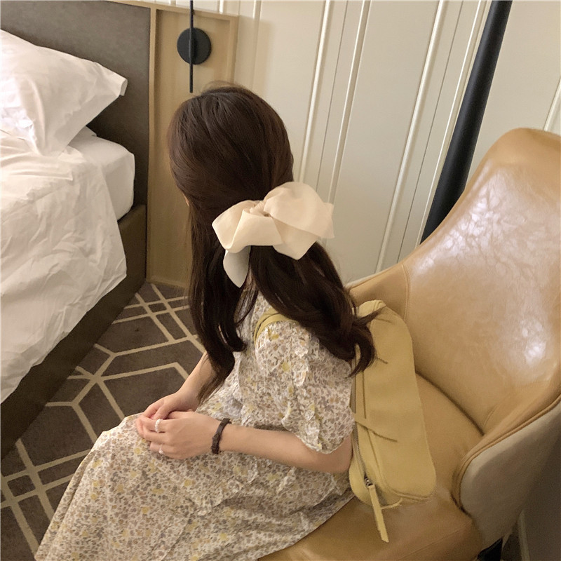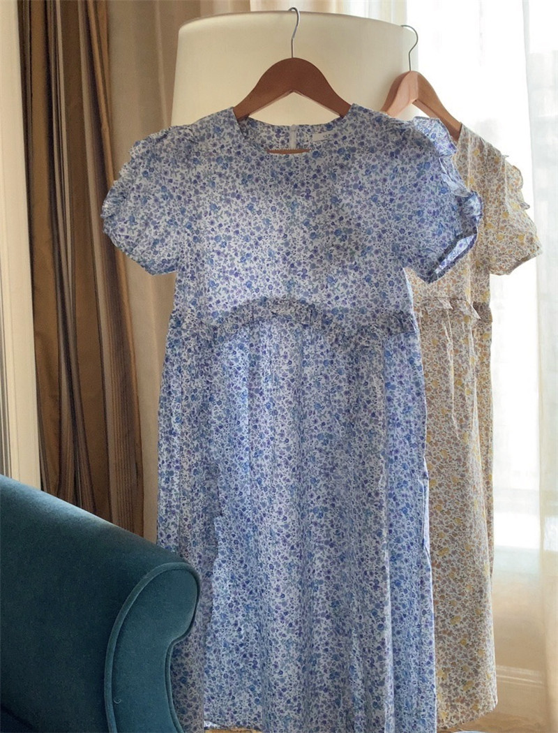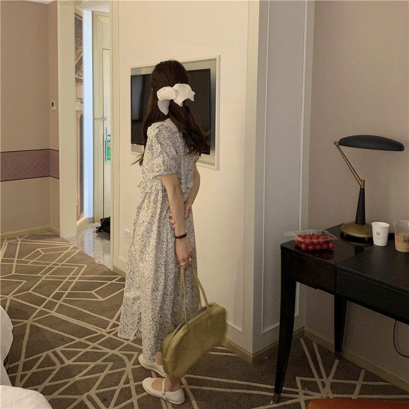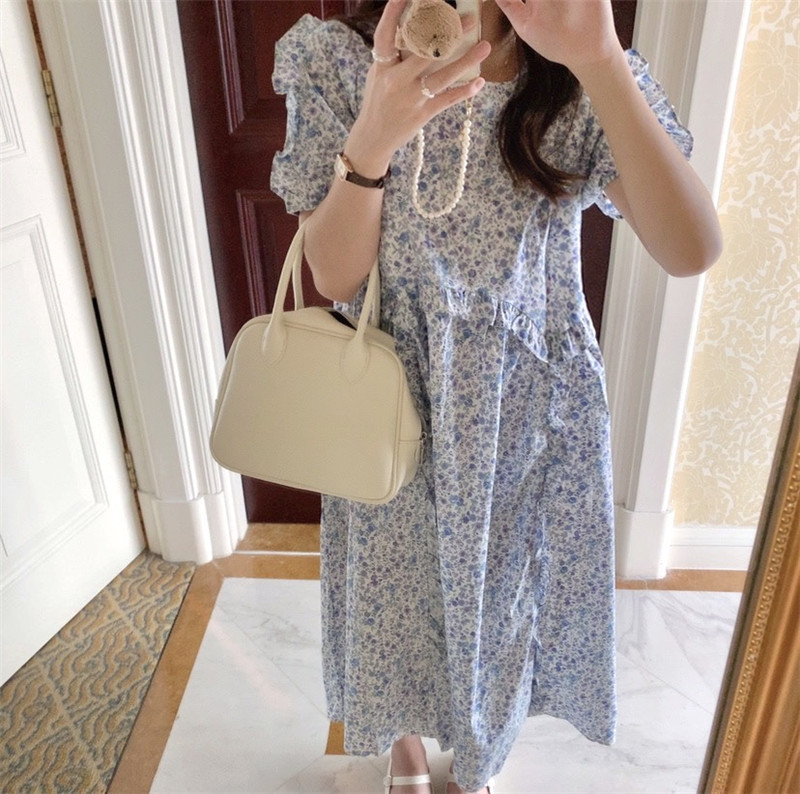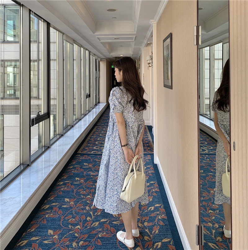 Floral dress women's spring and summer new gentle temperament French retro bubble sleeve loose slim mid length dress